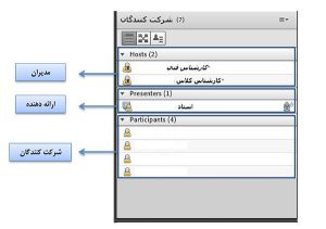 شامل ليست شركت كنندگان كه تعداد افراد حاضر در كلاس و اسامي آنان را نشان مي دهد،كه شامل سه گروه كاربري